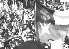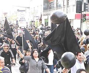 Banderas y globos negros en marcha por nuevo hospital