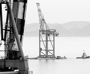 Primera de tres "grúas gigantes" llega a Valparaíso