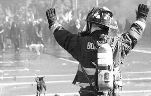 Bombero arriesga la vida para frenar incendio del 21 de mayo
