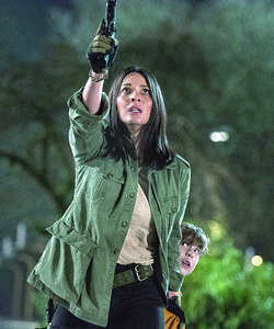 Olivia Munn, actriz en "El depredador", se esconde de los cazadores alienígenas