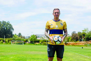 Cristián Campestrini presiona para atajar en la gran final del Torneo de Verano ante la UC