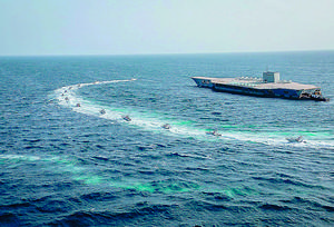 Tensión: ejercicio militar iraní ataca con misiles la maqueta de un portaaviones
