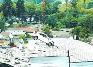 Auto fue retirado con grúa del techo de Seminario San Rafael