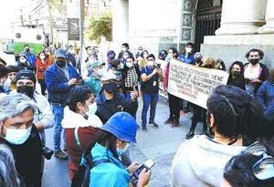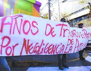 Trabajadores protestan frente al municipio por paralización de obra
