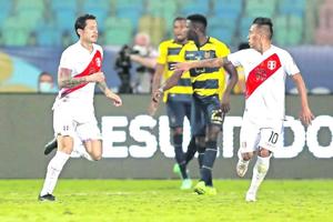 Perú se acerca a cuartos de final tras empatar 2-2 con Ecuador