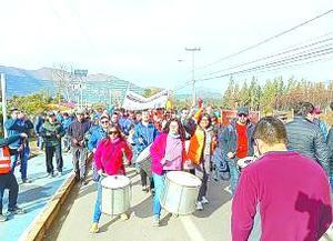 Mineros marchan en la previa de votación por planta